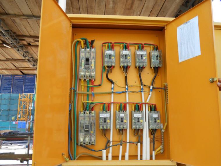 三级配电系统是指施工现场从电源进线端开始到用电设备之间,必须经过三级配电装置配送电力,即经总配电箱(一级箱)或配电 室的配电柜、分配电箱(二级箱 )、开关箱(三级箱)分三个层次逐级向用电设备配送电力。