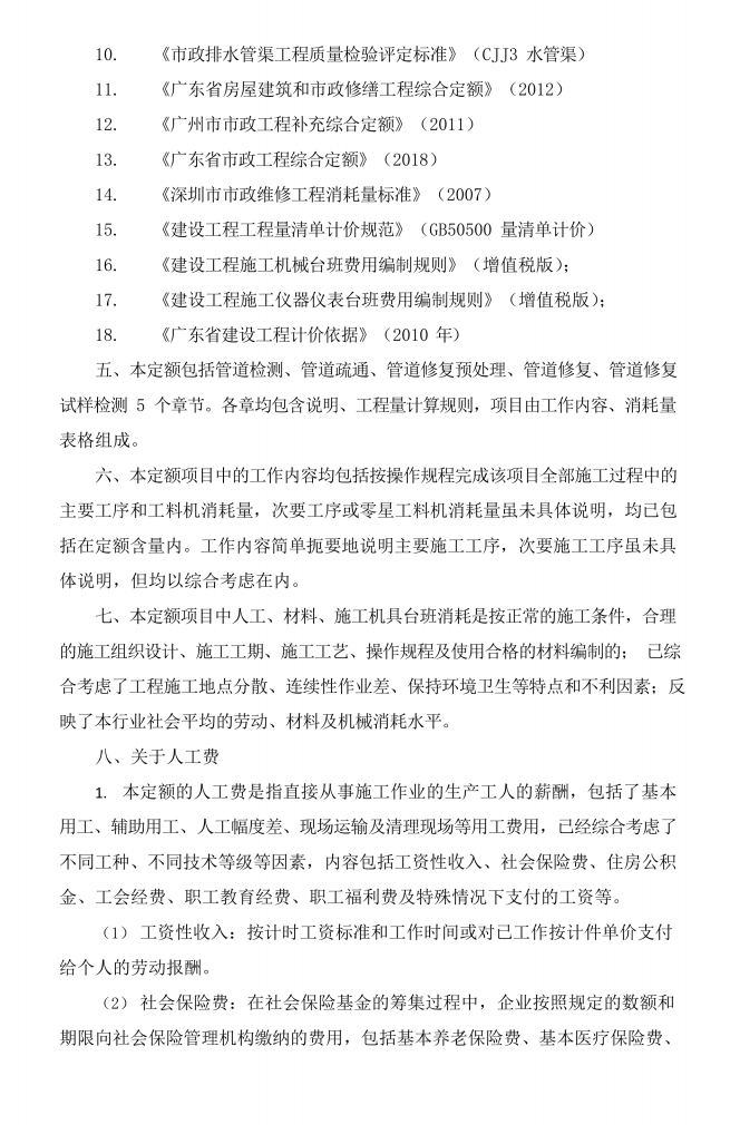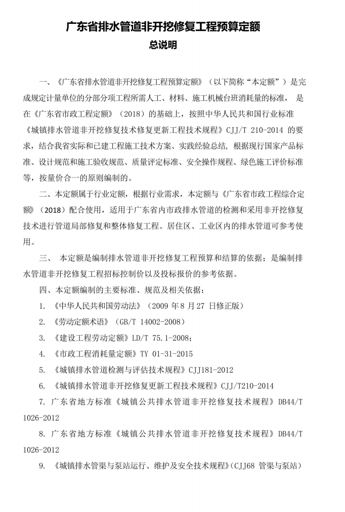 广东省排水管道非开挖修复工程预算定额(2019),108页,pdf格式