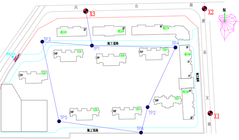 由于施工现场狭小,工程施工测量工作的难点是建立一个适合本工程特点的施工控制网;施工测量的主要任务是快速及时地放样出建筑物的轴线,且测量精度要求高,为了保证工程测量的精度,结合现场实际情况,特制定本工程测量方案。
