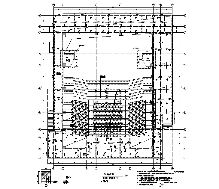 本项目为江苏宿迁市高级中学,子项目为报告厅。框架结构,地上2层,地下0层,主要结构跨度:9.40×7.30;