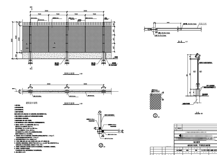 包括:围网基础结构施工图;建筑设计说明;平立剖面图;