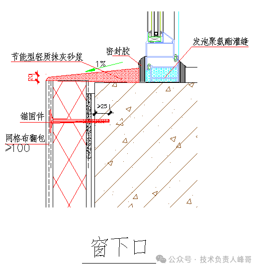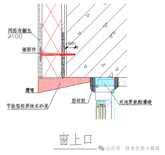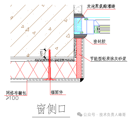 ② 门窗侧边用轻质抹灰砂浆保温,与大墙面保温无缝衔接;