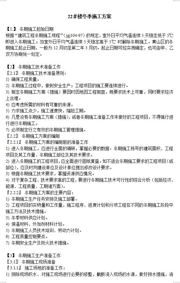 • 住宅楼建筑工程冬季施工方案
