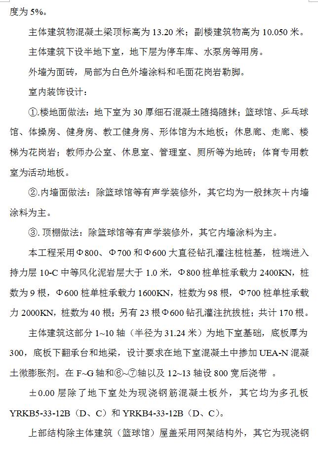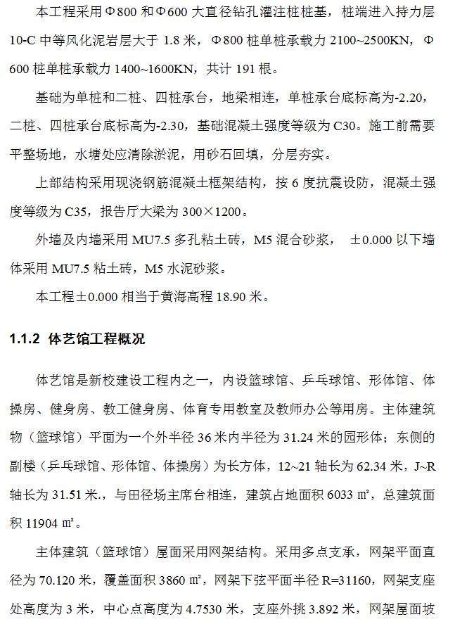 体艺馆工程概况