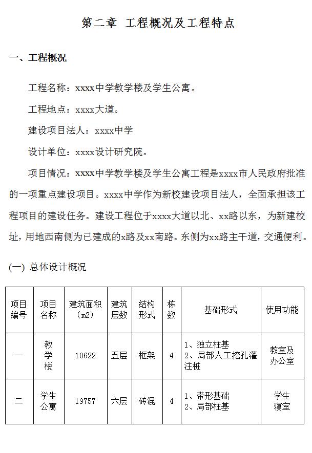4. 教学楼工程基础局部为人工挖孔灌注桩,该分部工程的施工是保证本期工程质量的又一关键所在,必须有针对性地制定质量和工期保证措施,预防桩基质量问题的发生。