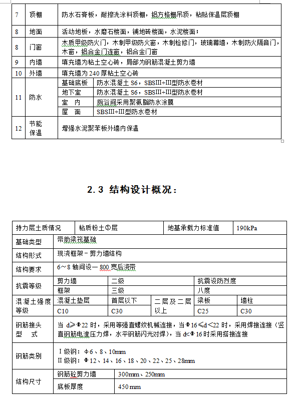 建筑面积为6893m2,场地面积为3300 m2,框架-剪力墙结构,带肋梁筏板基础。地上:五层,局部六层;地下:一层;地下一层:4.20 m;