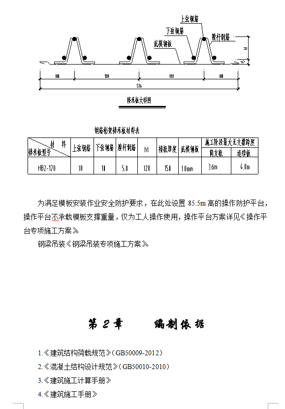 18层飘台概况:本工程在两座塔楼之间在18层标高为85.5高处有飘台设置,梁跨6m,梁截面尺寸为700mm*1600mm,结构形式为型钢混凝土组合结构,梁模板采用型钢自承重形式。板厚150mm,模板采用钢筋桁架楼承板形式。