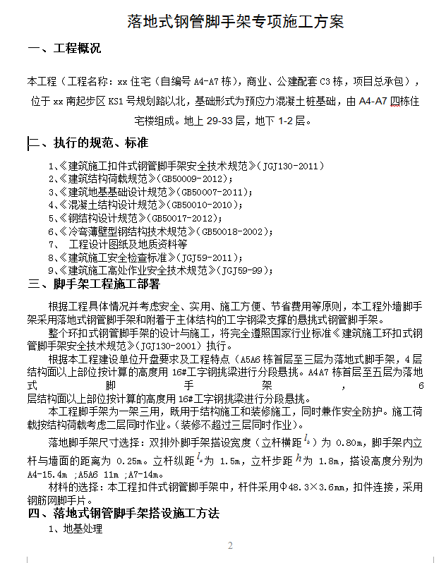 落地式外脚手架,立杆落在地下室顶板上,按《建筑施工环扣式钢管脚手架安全技术规范》(JGJ130-2001),本工程设置为双排落地单立杆。