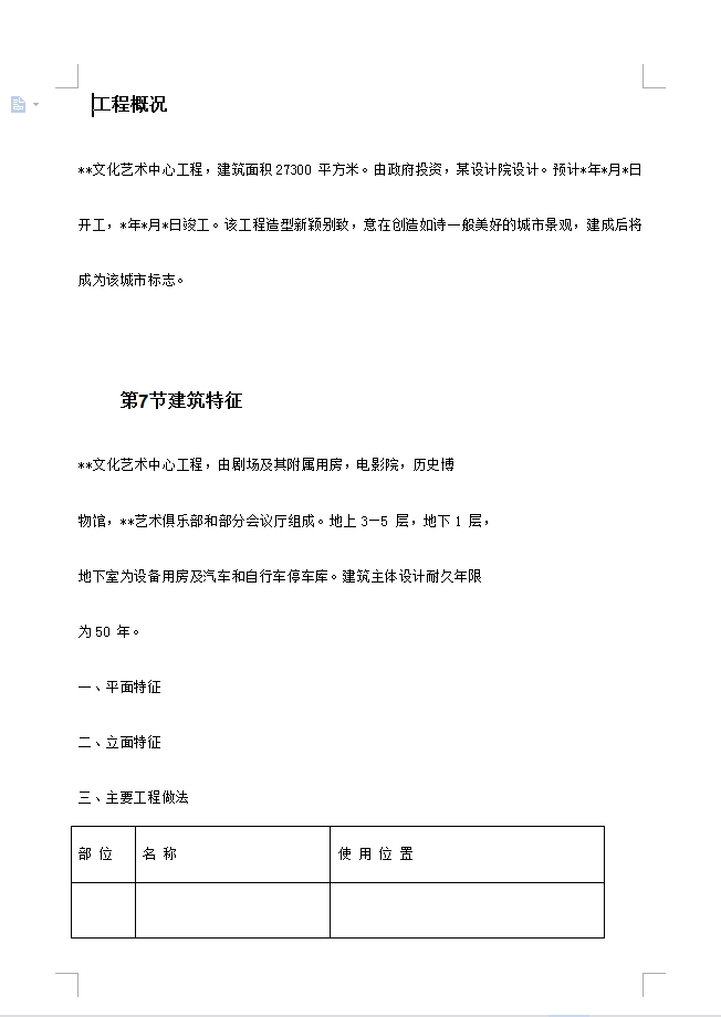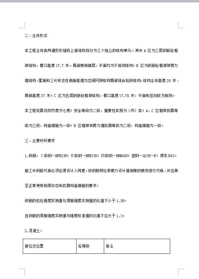**文化艺术中心工程,建筑面积27300 平方米。由剧场及其附属用房,电影院,历史博物馆,**艺术俱乐部和部分会议厅组成。地上3—5 层,地下1 层,地下室为设备用房及汽车和自行车停车库。建筑主体设计耐久年限为50 年。本工程设一层地下室,层高4.2 米,局部5 米及6 米。基础采用钢筋砼预制空心桩,桩端持力层为粉质粘土层,桩径350*350mm,有效桩长22.75 米和21.55 米。桩顶设独立承台,承台间设连系梁,地下室底板厚500mm,外墙厚300 mm,顶板为井字梁结构,板厚为180 mm。