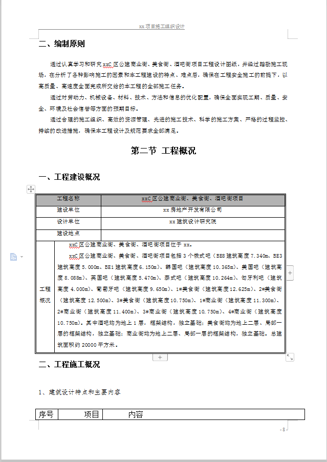 本资料为框架结构商业街、美食街施工组织设计,共123页。