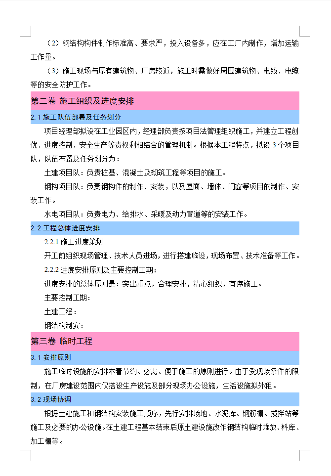 本工程位于XX工业园区内,建筑面积为3600平方米。结构形式为轻钢结构,建筑层数为一层(局部二层),檐口高度为6.5米。