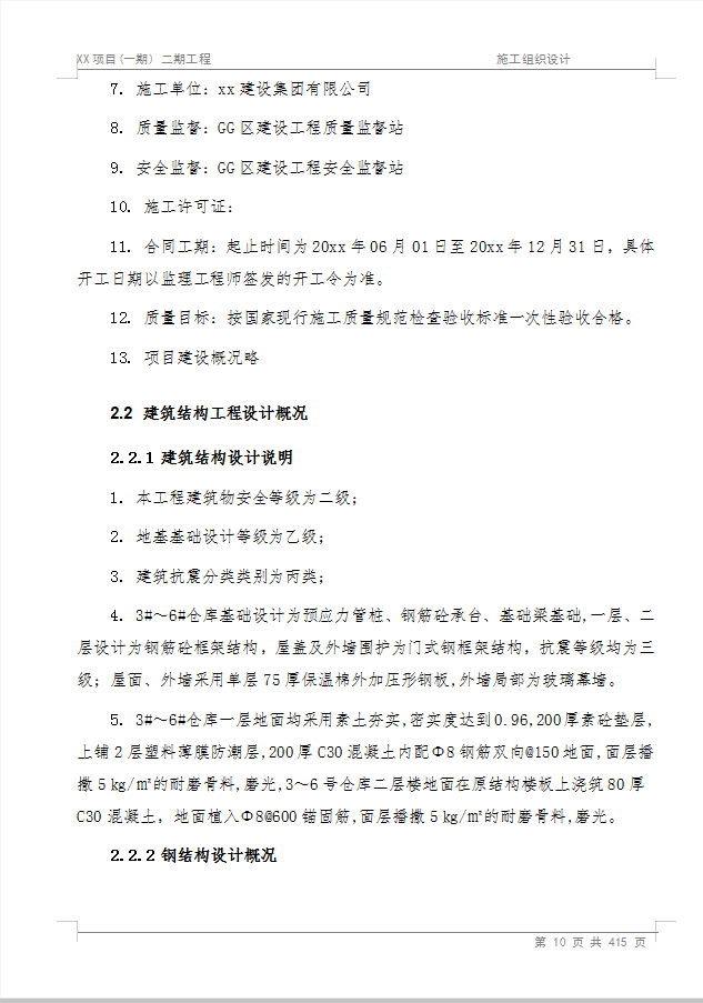 本资料为物流库及仓储配套用房工程施工组织设计,共414页。