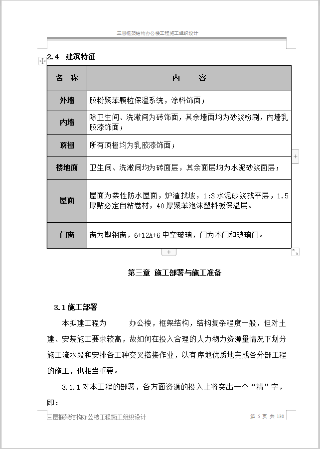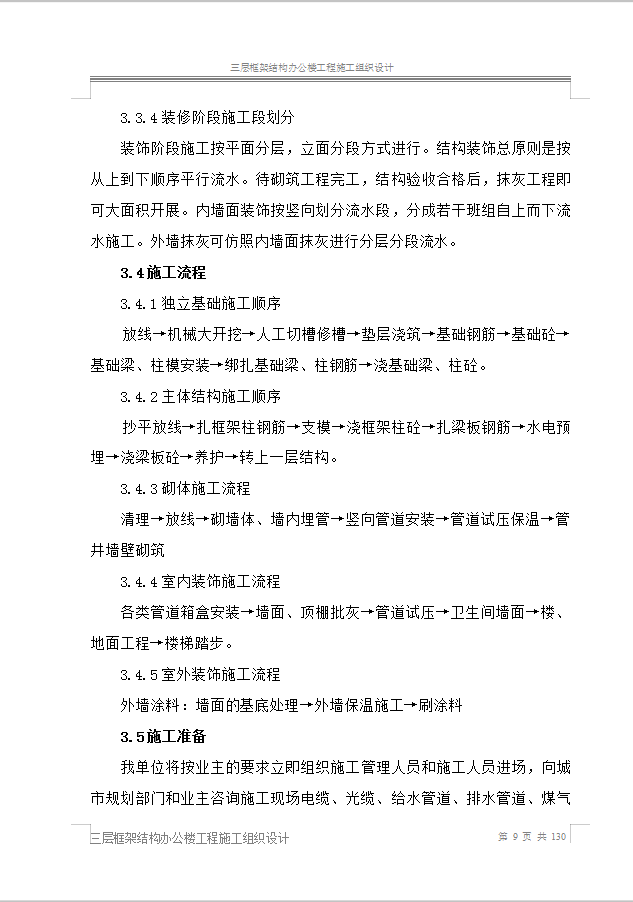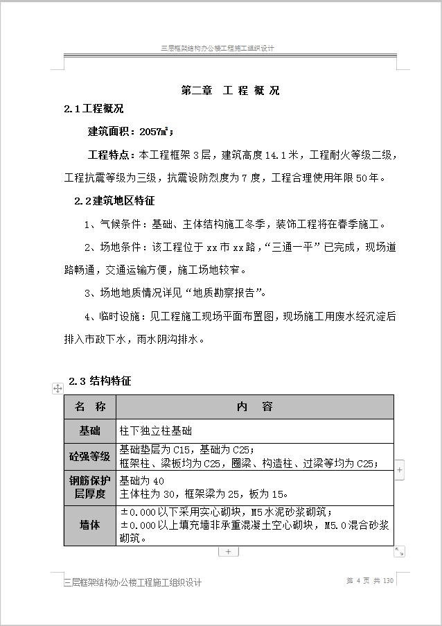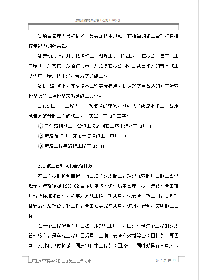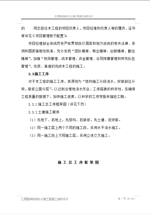 本资料为三层框架结构办公楼工程施工组织设计,共130页。