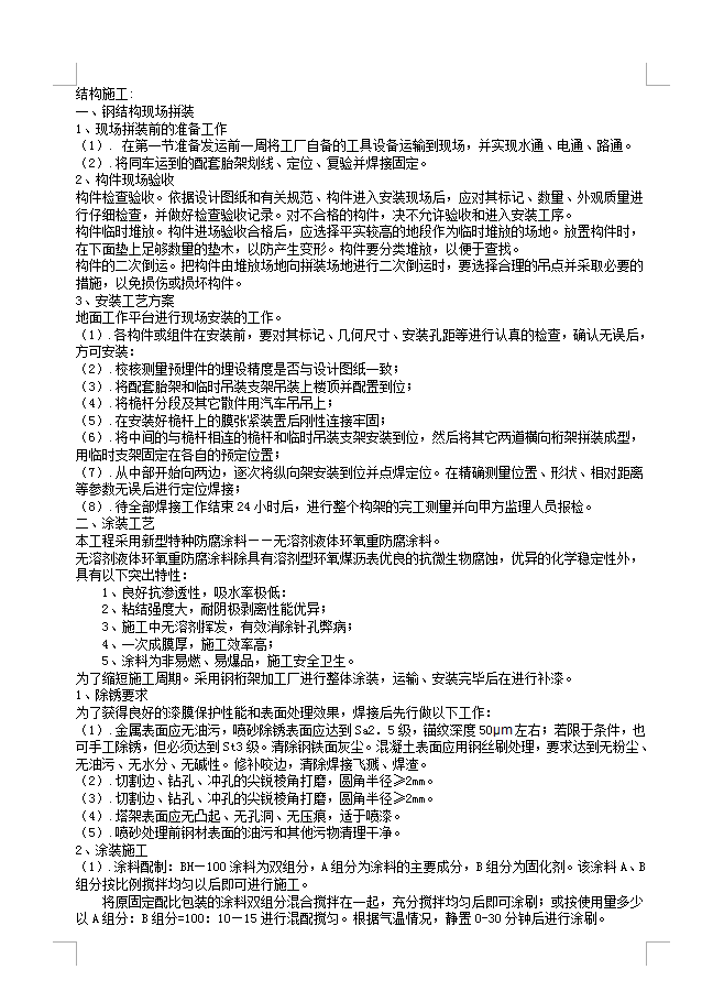 • 某钢结构安装施工方案