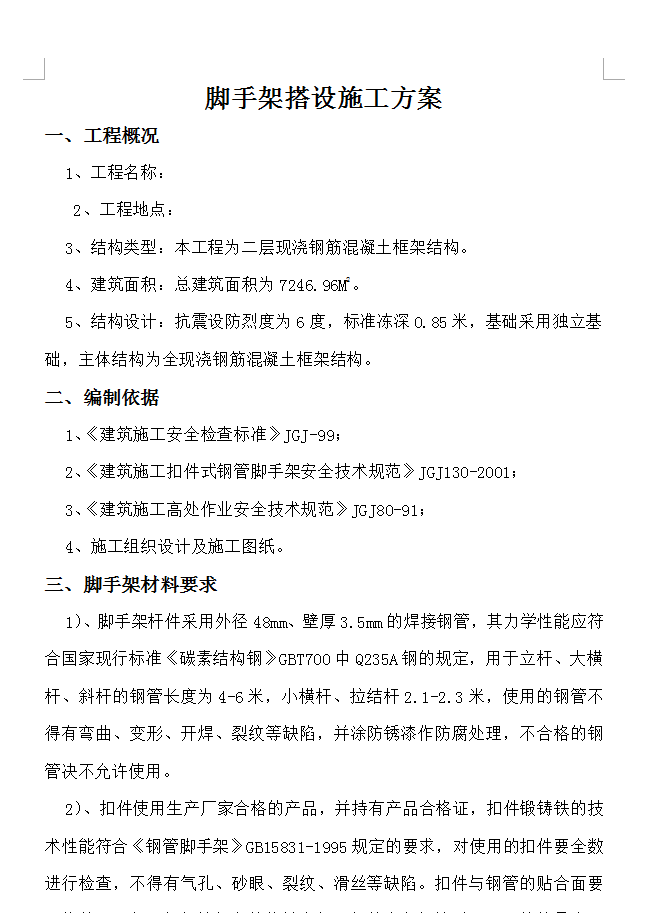 • 脚手架搭设施工方案 23P