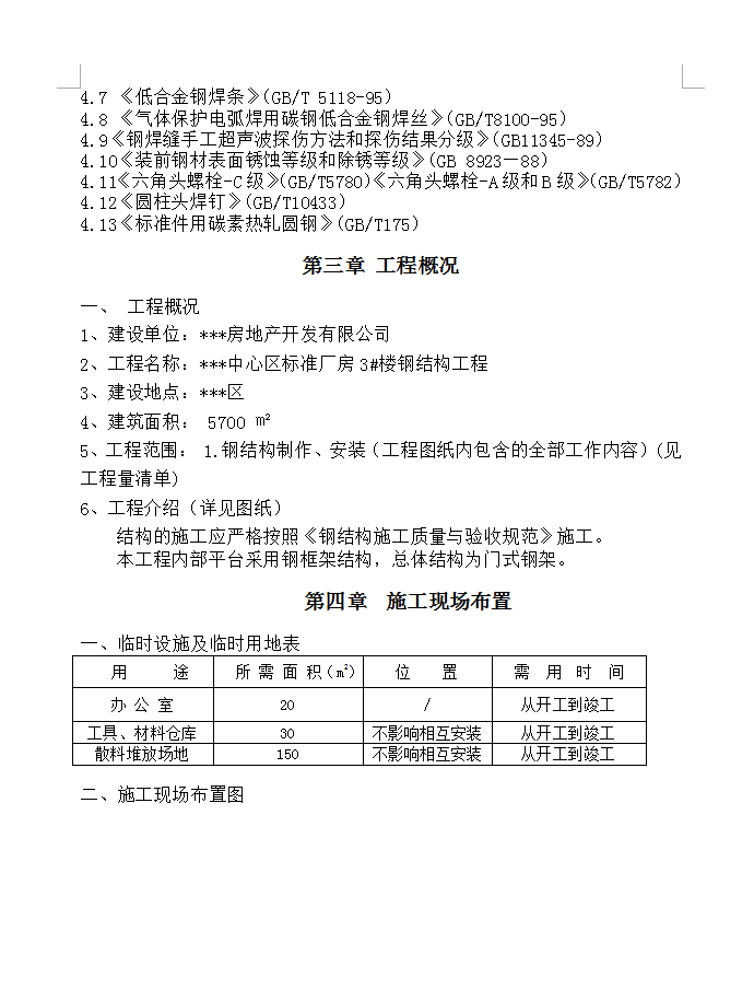 建筑面积: 5700 ㎡,工程范围: 1.钢结构制作、安装(工程图纸内包含的全部工作内容)(见工程量清单)