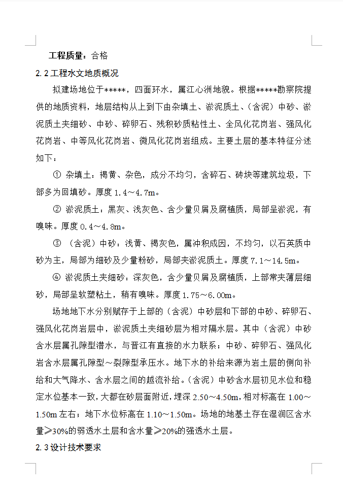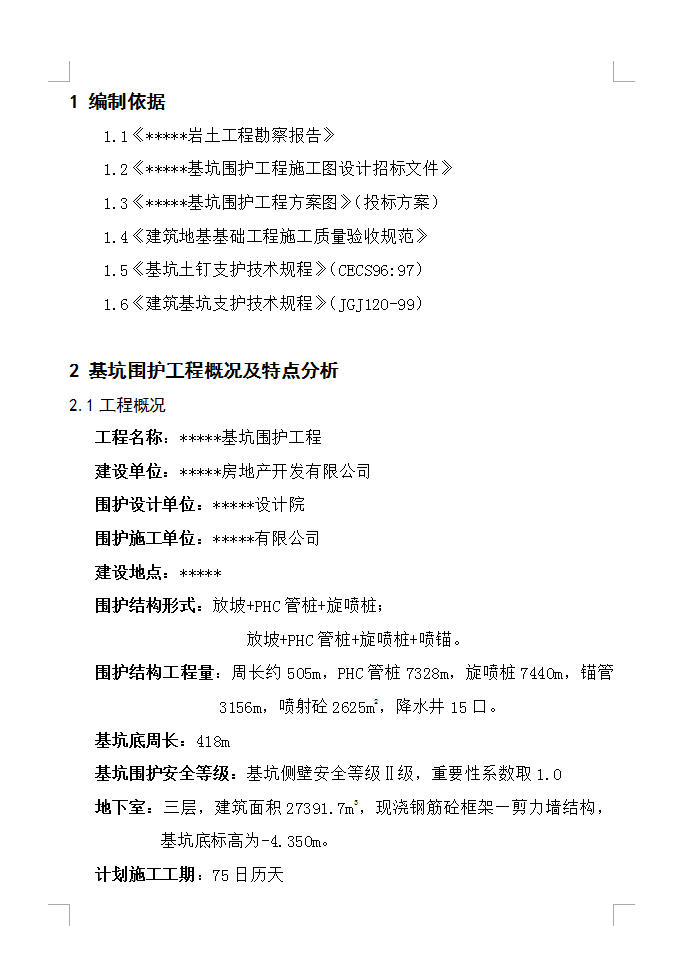 基坑底周长:418m基坑围护安全等级:基坑侧壁安全等级Ⅱ级,重要性系数取1.0地下室:三层,建筑面积27391.7m3,现浇钢筋砼框架—剪力墙结构,基坑底标高为-4.350m。