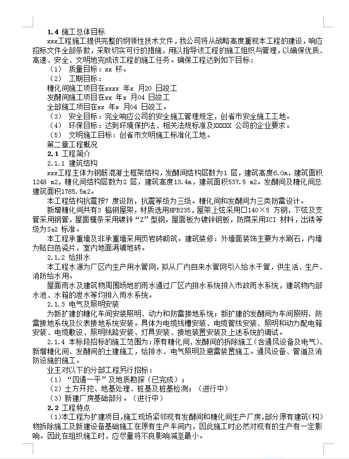 发酵间、糖化间施工组织设计 52P