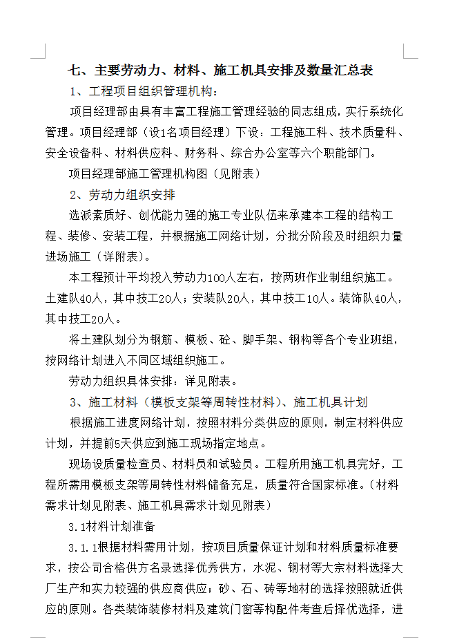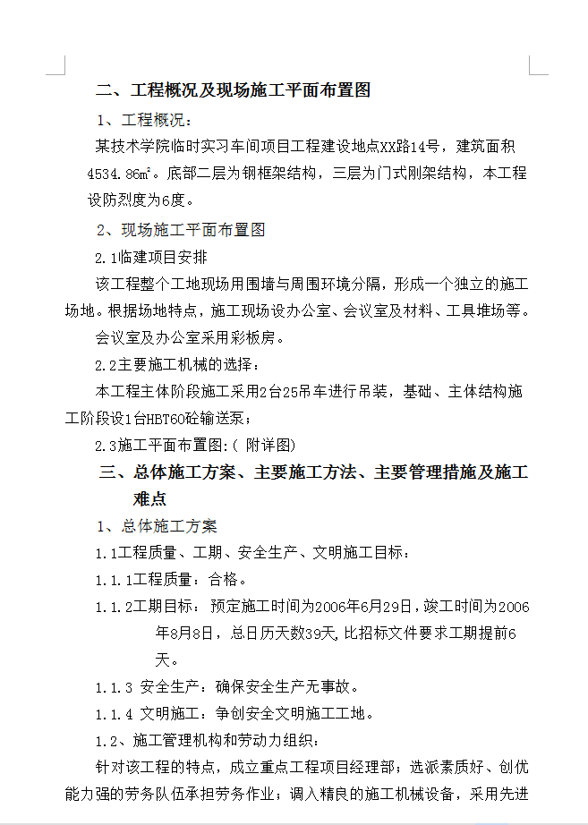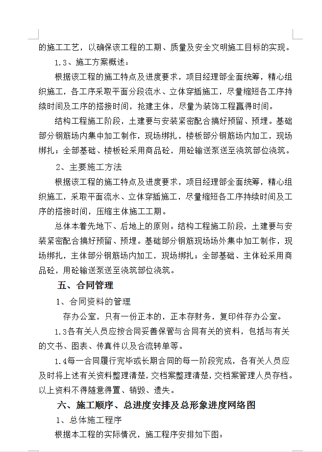 三、总体施工方案、主要施工方法、主要管理措施及施工难点