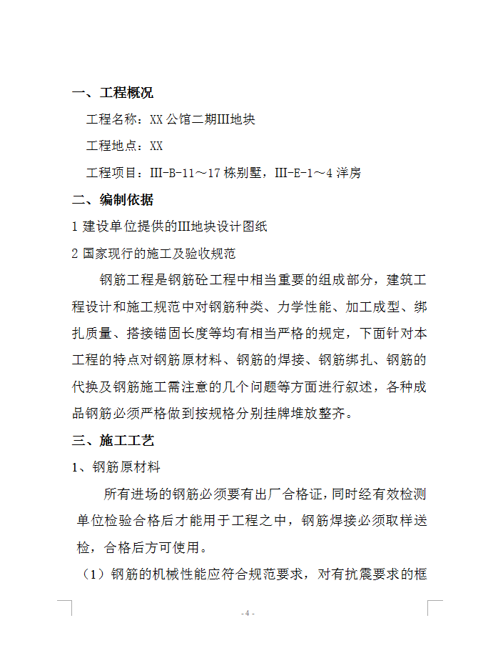 一、 工程概况……………………………………………4