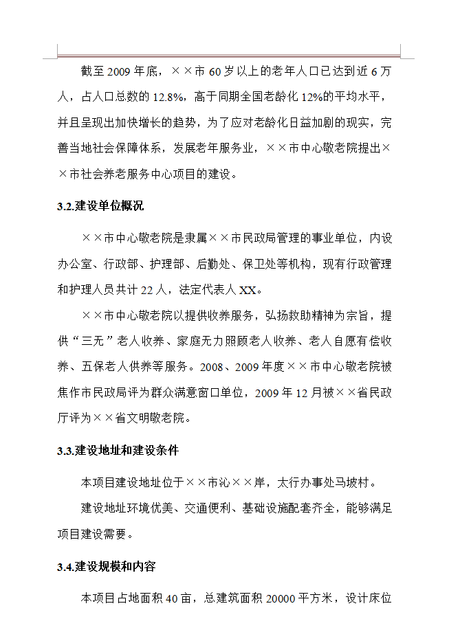 ××市中心敬老院是隶属××市民政局管理的事业单位,内设办公室、行政部、护理部、后勤处、保卫处等机构,现有行政管理和护理人员共计22人,法定代表人XX。××市中心敬老院以提供收养服务,弘扬救助精神为宗旨,提供“三无”老人收养、家庭无力照顾老人收养、老人自愿有偿收养、五保老人供养等服务。2008、2009年度××市中心敬老院被焦作市民政局评为群众满意窗口单位,2009年12月被××省民政厅评为××省文明敬老院。