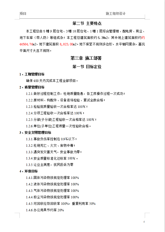 本工程总由5幢9层住宅、3幢18层住宅、1幢1层综合管理楼、配电房、商业、地下车库(带人防)等组成杂;本工程总建筑面积约5.3Wm2,其中地上建筑面积约约44564.76m2,地下建筑面积8,823.00m2。地下库呈不规则多边形,水平轴网复杂,基坑平面尺寸大且不规则。