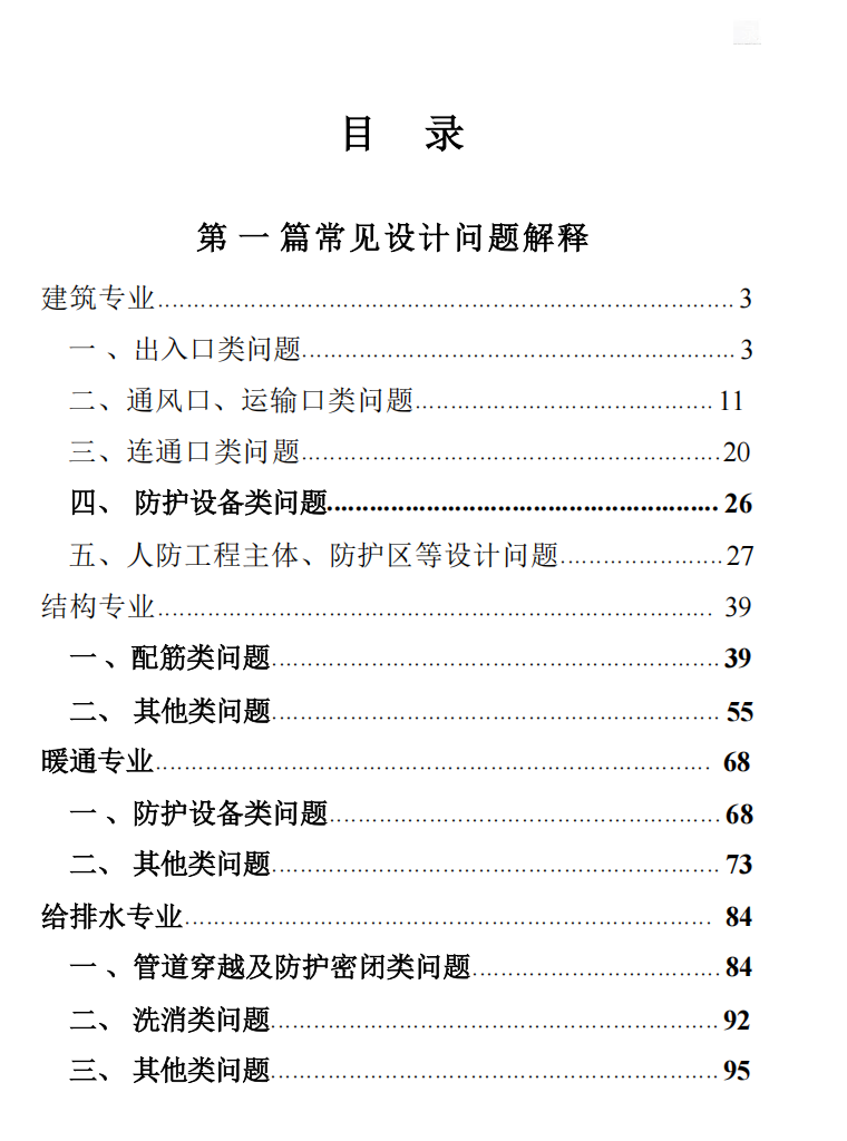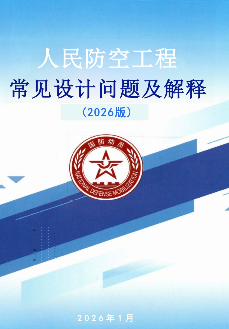 《人民防空工程常见设计问题及解释》(2026 版)pdf格式,193页,本书作为人防工程设计规范的参考读本自印制和发放以来,受到广泛好评,除北京外,全国各地的人防行业从业人员也积极申领并参考学习。本书为提高对人防工程建设标准的理解、促进执行标准的统一起到了一定的积极作用。