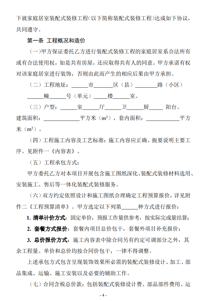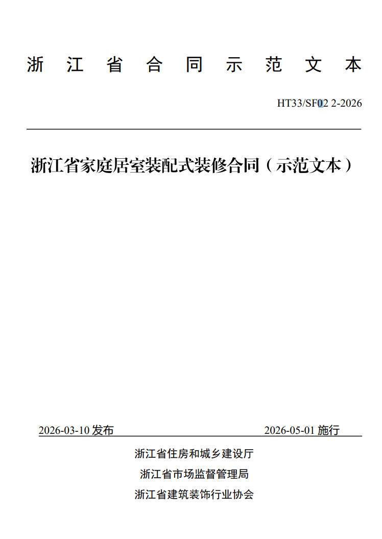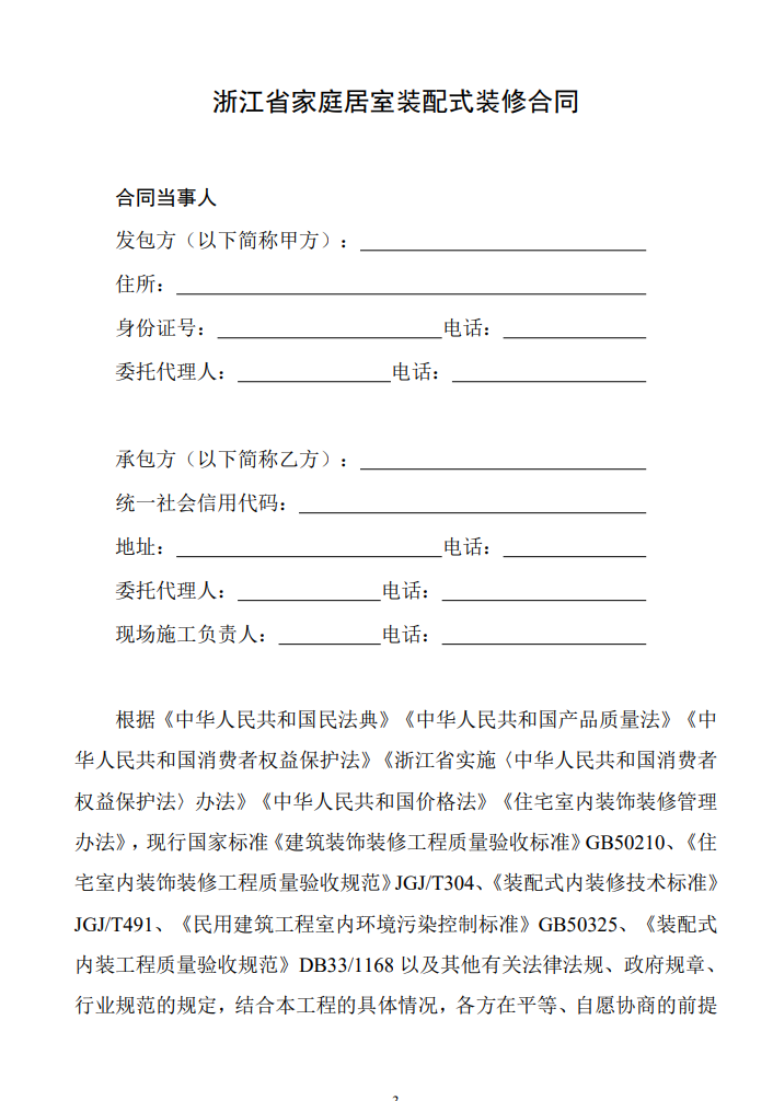 • 浙江省家庭居室装配式装修合同(示范文本)