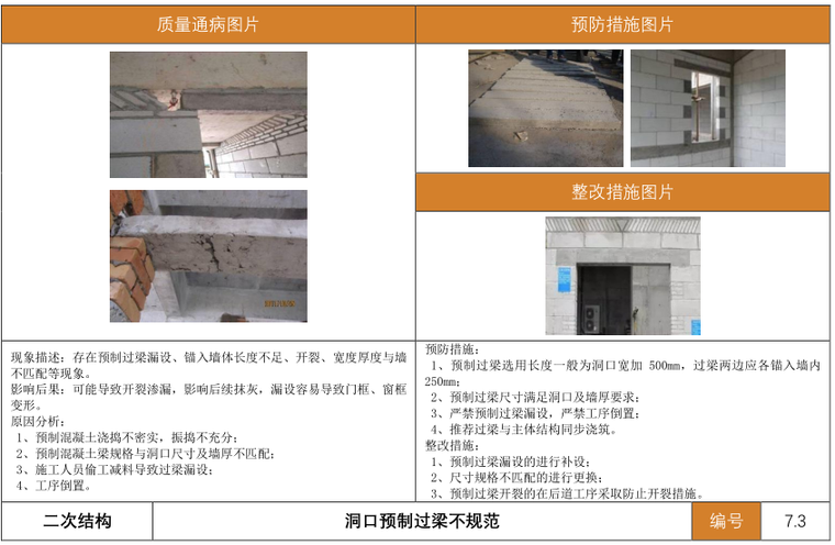 本资料根据施工节点,通过大量图片分析了住宅工程中常见的质量通病原因,并给出对应的预防及整改措施。本手册具有较强的实用性和可操作性,可作为现场施工的重要参考。