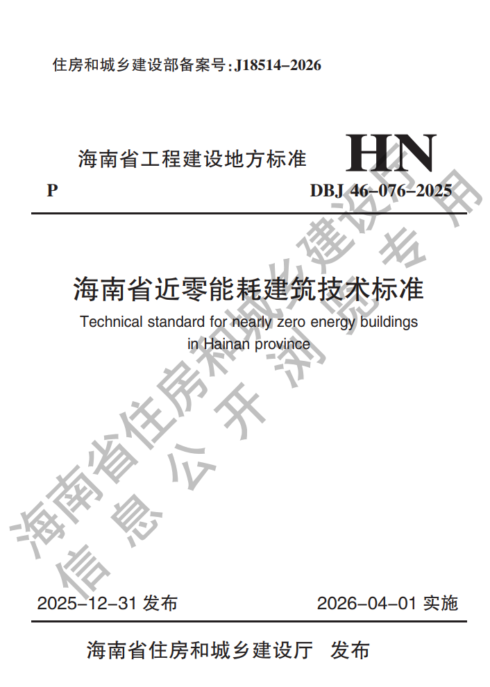 • 海南省近零能耗建筑技术标准DBJ46-076-2025