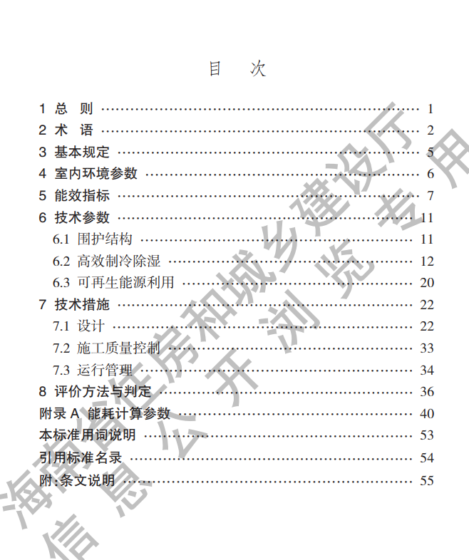 本标准的技术内容包括:1总则;2术语;3 基本规定;4室内环境参数;5能效指标;6技术参数;7技术措施;8评价方法与判定;附录A能耗计算参数