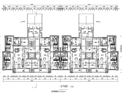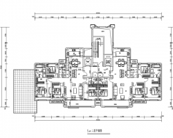 十层欧式洋房住宅楼建筑施工图包括:屋顶造型平面图、机房层平面图、屋顶层平面图、十层平面图、十层平面图、五~九层平面图、四层平面图、三层平面图、二层平面图、一层平面图等。