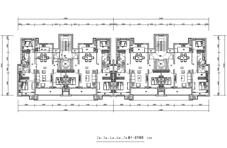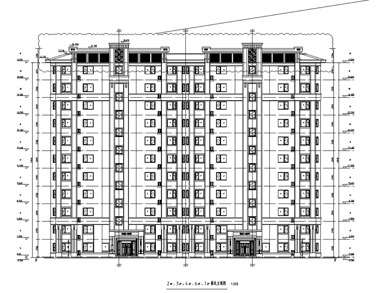 各层住宅平面图、立面图、剖面图、楼梯详图。