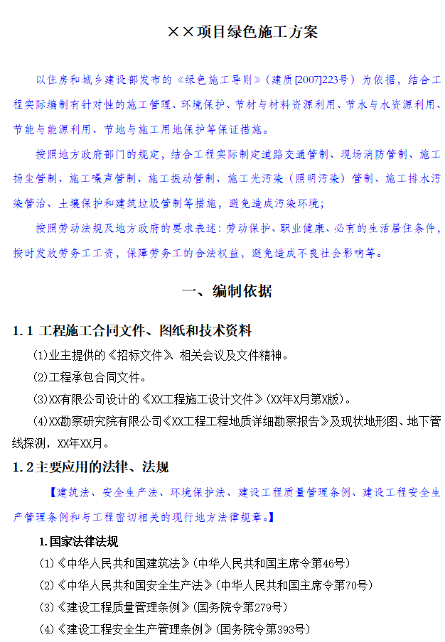 绿色施工方案编写范例,word格式,17页,供参考学习