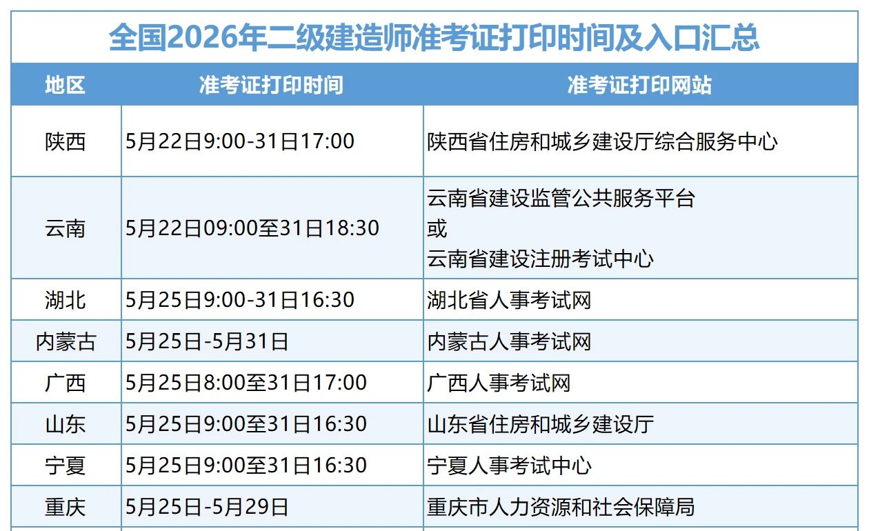 距离二建考试越来越近了,同学们在抓紧备考的同时,也需要关注一下考试动态!小万整理了各省准考证打印时间、考前注意事项,提前收藏哦~