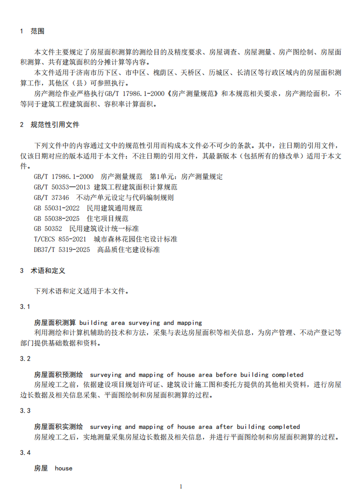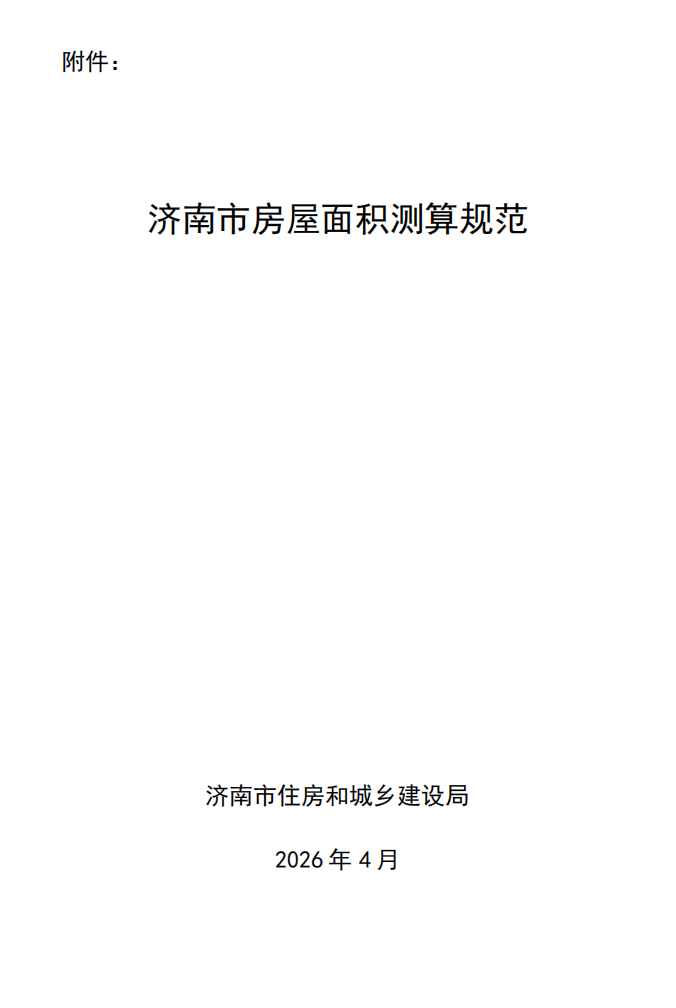济南市住房和城乡建设局 关于印发《济南市房屋面积测算规范》的通知 济建发〔2026〕11号 各区县住房城乡建设局、 济南新旧动能转换起步区管委会建设管理部、济南高新区管委会规划建设部、市南部山区管委会规划发展局,各房地产开发企业、勘察设计企业、房产测绘单位: 为进一步规范全市房屋面积测算标准,提升房屋面积管理水平,助力落实“好房子”建设和加快构建房地产发展新模式有关要求,根据《房产测量规范》(GB/T 17986-2000)、《民用建筑通用规范》(GB55031-2022)、《住宅项目规范》(GB55038-2025)等国家标准,结合全市实际,市住房城乡建设局研究制定了《济南市房屋面积测算规范》,现印发给你们,请遵照执行。 附件:3D&fileName=%E6%B5%8E%E5%8D%97%E5%B8%82%E6%88%BF%E5%B1%8B%E9%9D%A2%E7%A7%AF%E6%B5%8B%E7%AE%97%E8%A7%84%E8%8C%83.pdf" data-link="/cms_files/filemanager/1576/attach/20264/b8774528b0b64ec2bbc7c389f1e43a91.pdf" style="box-sizing: border-box; margin: 0px; padding: 0px; list-style: none; color: rgb(51, 51, 51); text-decoration-line: none; background-color: transparent; transition: 0.2s ease-out;">济南市房屋面积测算规范.pdf 济南市住房和城乡建设局 2026年4月10日 (此件公开发布) 点击下载:济南市房屋面积测算规范.pdf