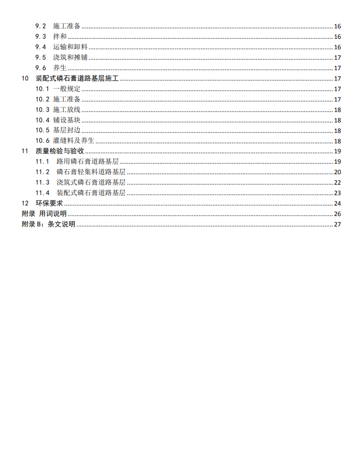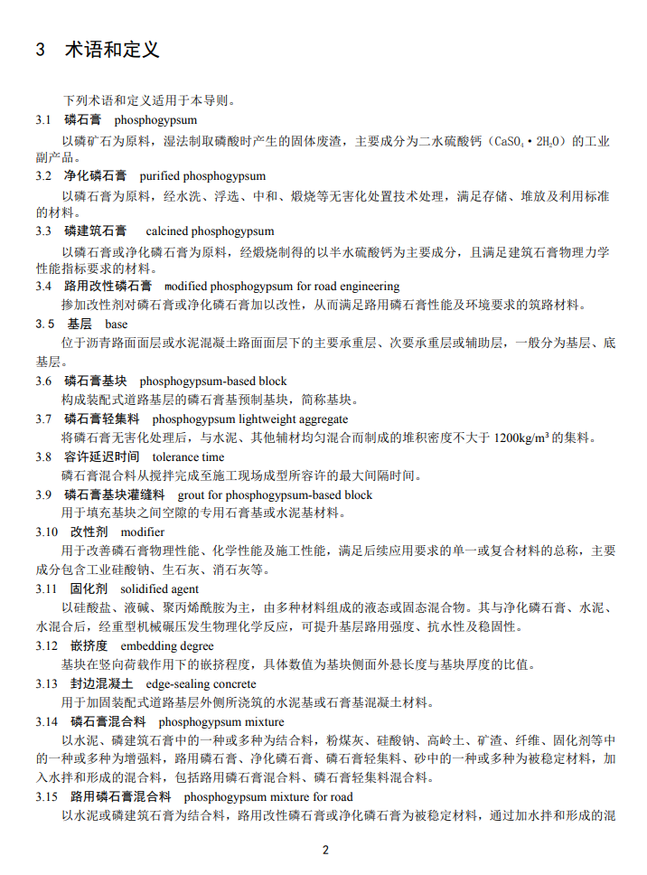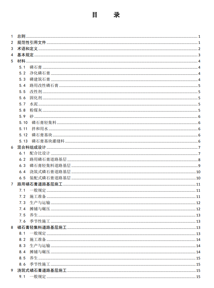 本导则分 12 章,主要内容有:总则、规范性引用文件、术语和定义、基本规定、材料、混合料组成设计、路用磷石膏道路基层施工、磷石膏轻集料道路基层施工、浇筑式磷石膏道路基层施工、装配式磷石膏道路基层施工、质量检验与验收、环保要求。