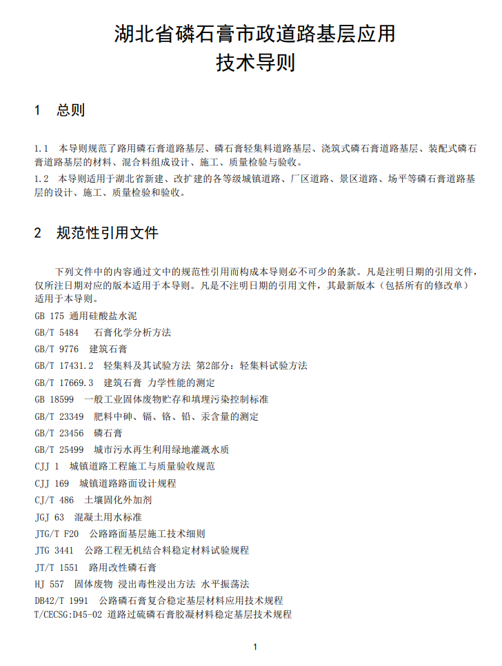 • 湖北省磷石膏市政道路基层应用技术导则(试行)