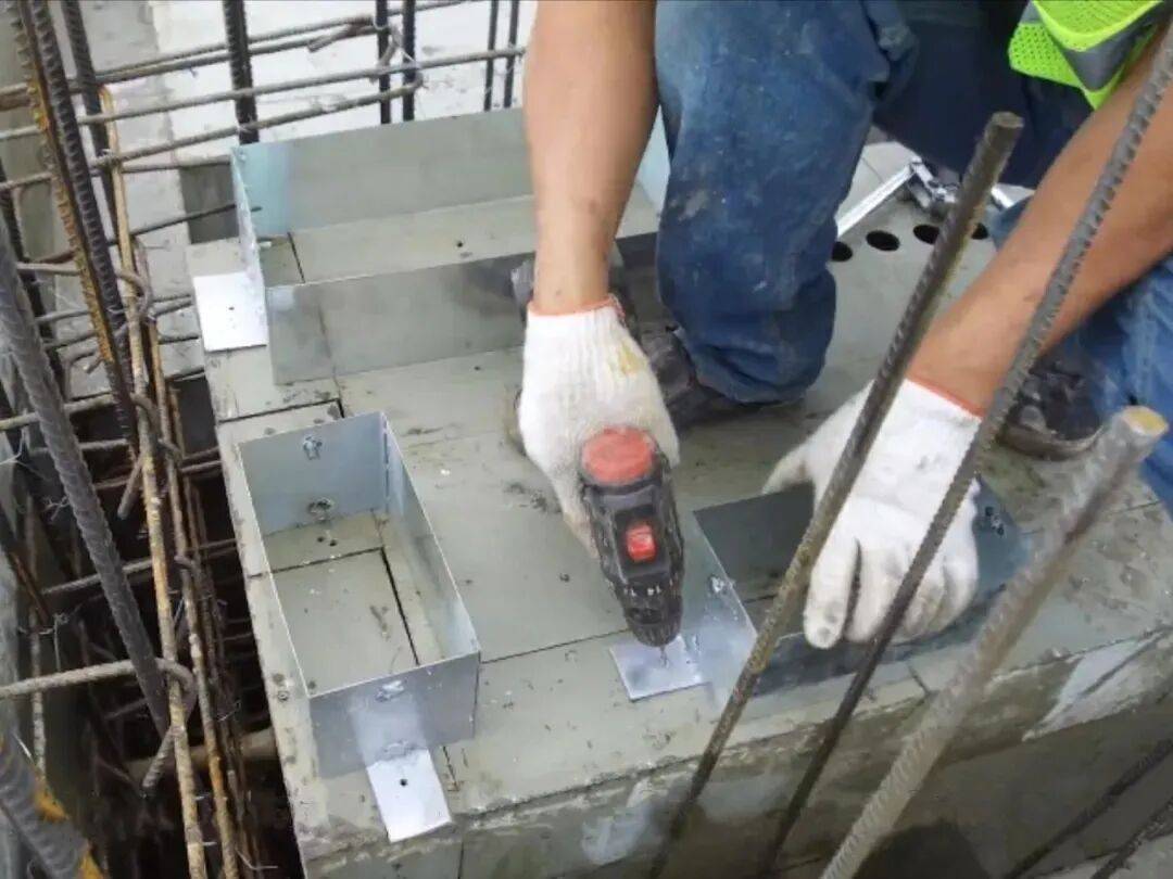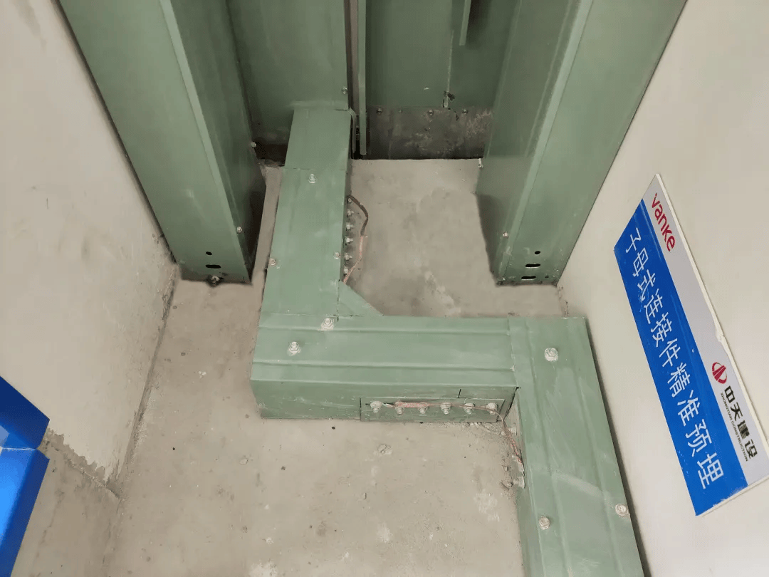 中铁项目创新应用的预埋件工艺,采用与桥架同规格的预埋件,可现场自制,也可采购成品件,通过底部翼板与模板固定,直接随主体结构一次预埋在楼板内,上下与桥架可通过连接片连接固定。