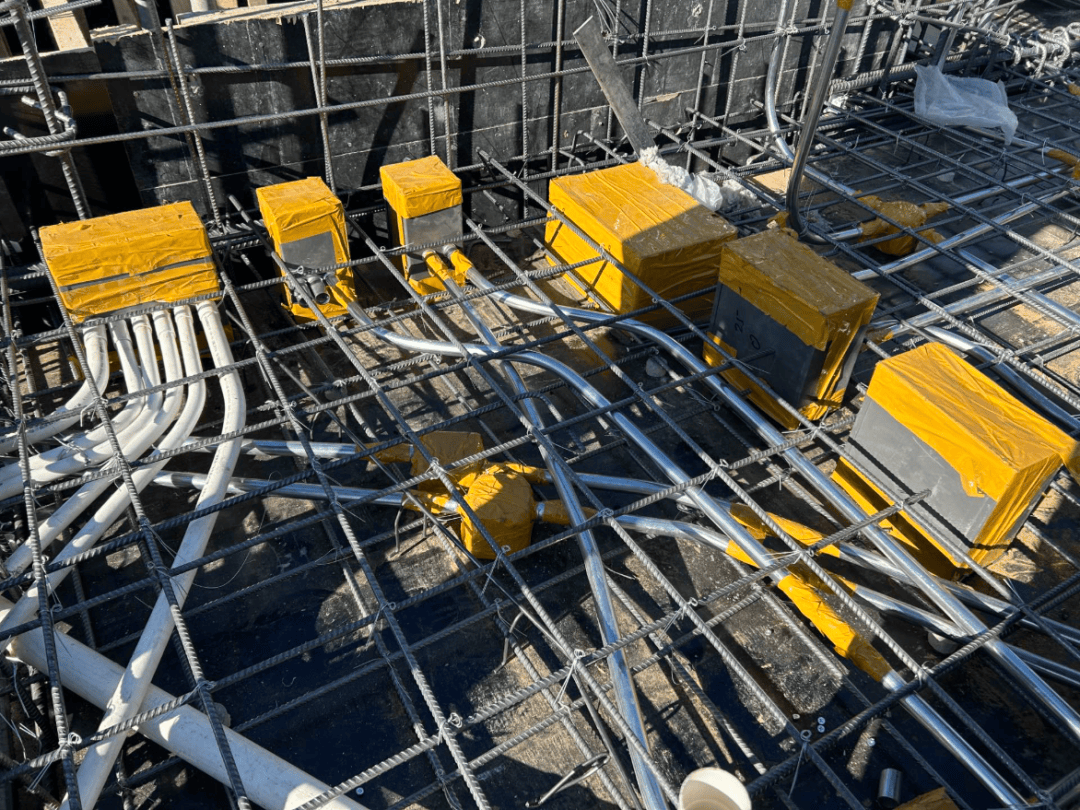 在中铁和中天等项目现场,我们学习了桥架穿楼板免留洞预埋件工艺,线管接入桥架预埋件,并一次性预埋成型,取代传统预留洞口做法,后期节省了二次封堵工序,避免了防火封堵质量通病,降本增效、质量可靠。