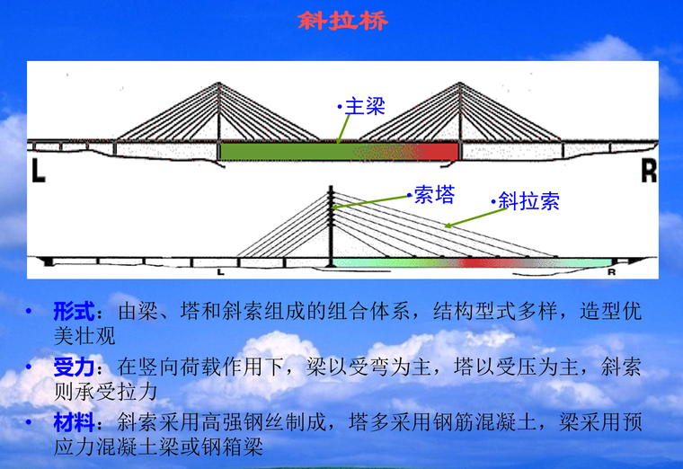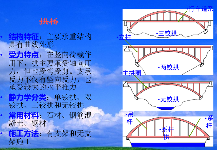 梁为承重结构,主要以其抗弯能力来承受荷载;在竖向荷载作用下,其支承反力也是竖直的;简支的梁部结构只受弯受剪,不承受轴向力。增加中间支承,可减少跨中弯矩,更合理地分配内力,加大跨越能力。梁式体系分实腹式和空腹式,前者的梁截面为T形、工字形和箱形等,后者指桁架结构;梁的高度可等高或变高。