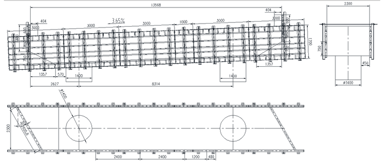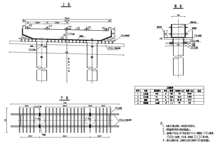 本项目主线桥879m/4座、匝道桥3055m/16座,本项目共有桥墩盖梁115片、中系梁36片,均为钢筋混凝土浇筑,混凝土强度为C35,最大墩高14.5m。综合考虑质量、安全、经济,经方案比选,盖梁模板采用定型钢模;工人上下作业采用安全爬梯;作业平台在支架法、抱箍法、穿心棒法中,选择了穿心棒法施工。