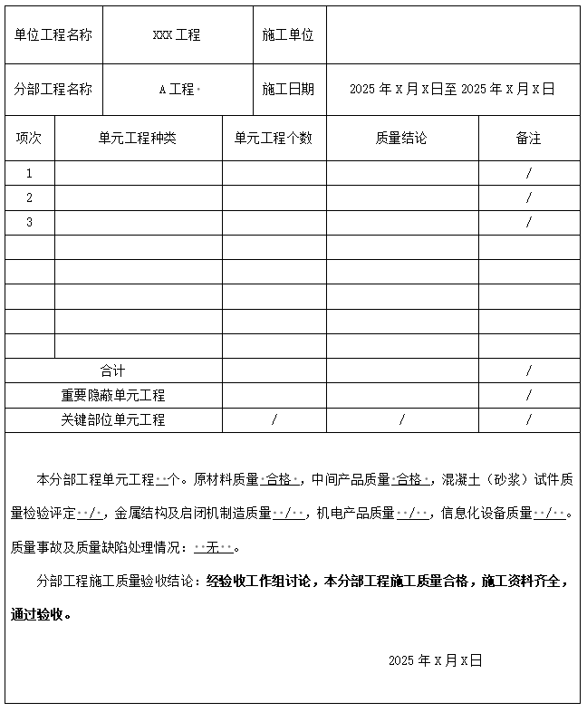 2025 水利工程分部工程验收流程和鉴定书