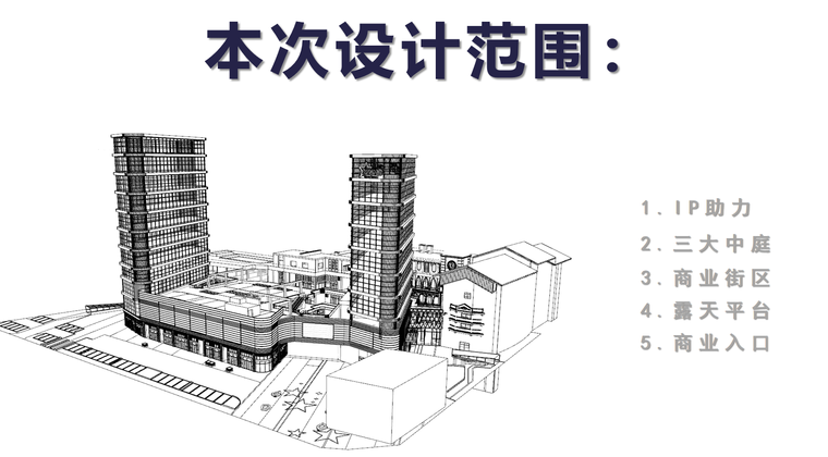 文档内容:客群属性、产品定位、在地文化提炼、IP 助力、三大中庭、商业街区、露天平台、商业入口、导视系统、空间美化。